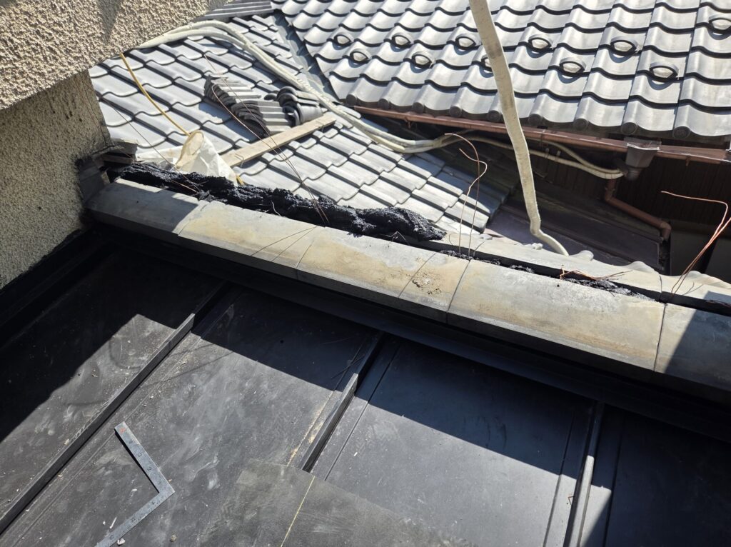 手前側を葺き替えるため、重なってしまう部分の棟を一度解体しました。