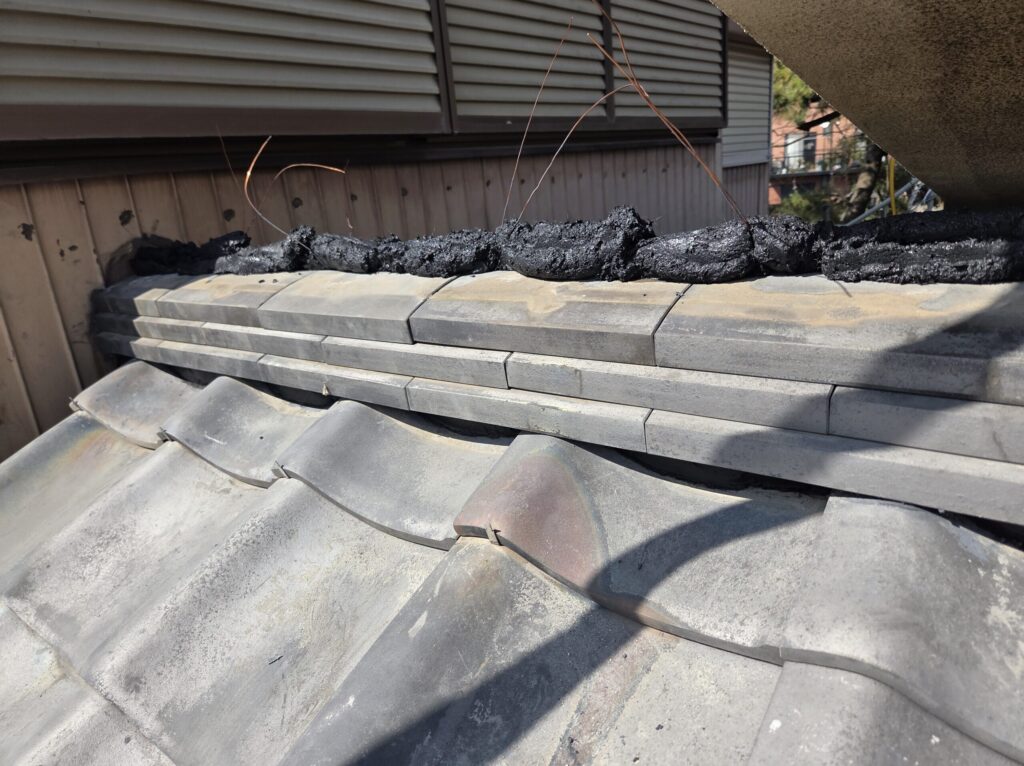 最後に丸瓦をかぶせ前後の部分を南蛮漆喰やコーキングで雨が入らないように施工し完工です。