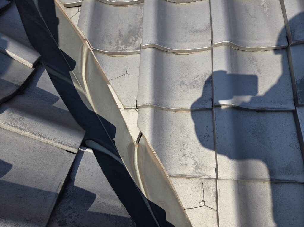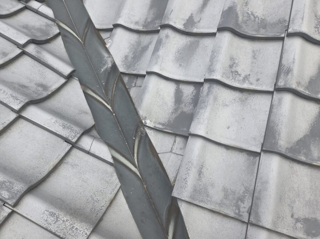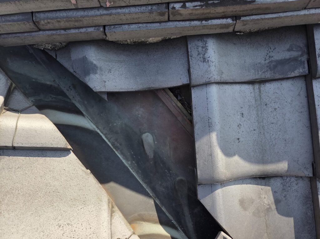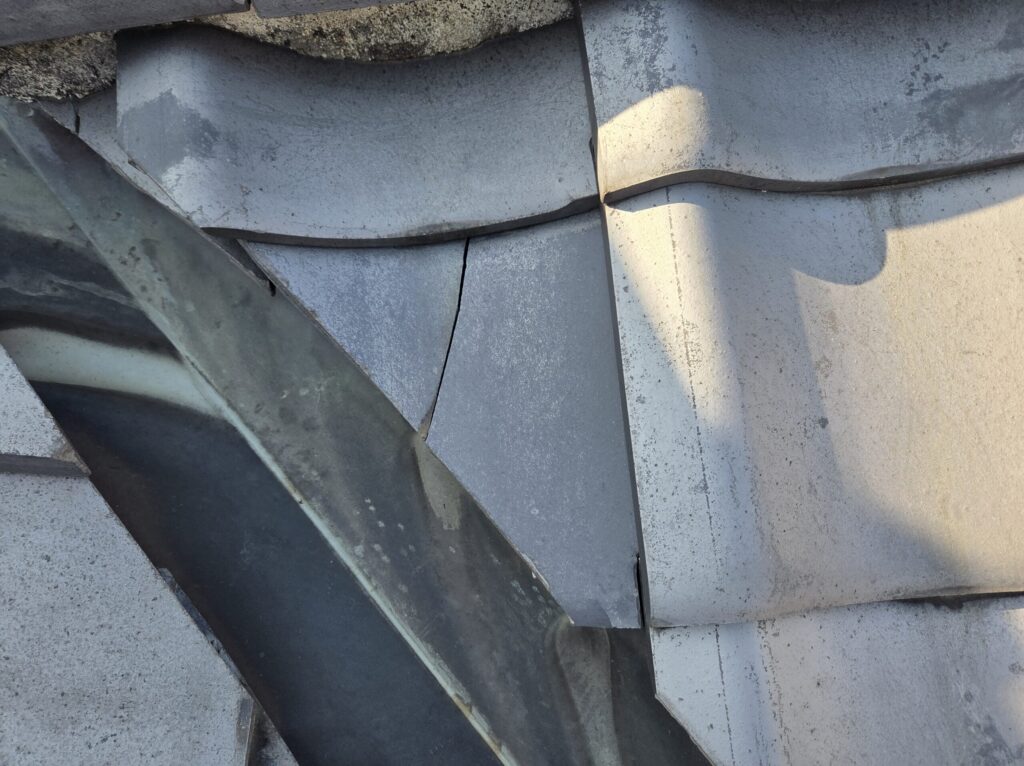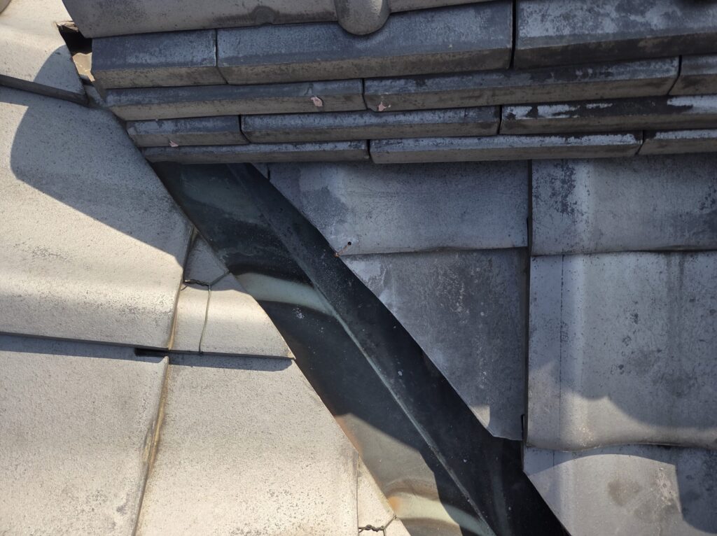 葛飾区のお寺の点検を行い谷部での瓦割れおよびズレがありましたので修理をしました。