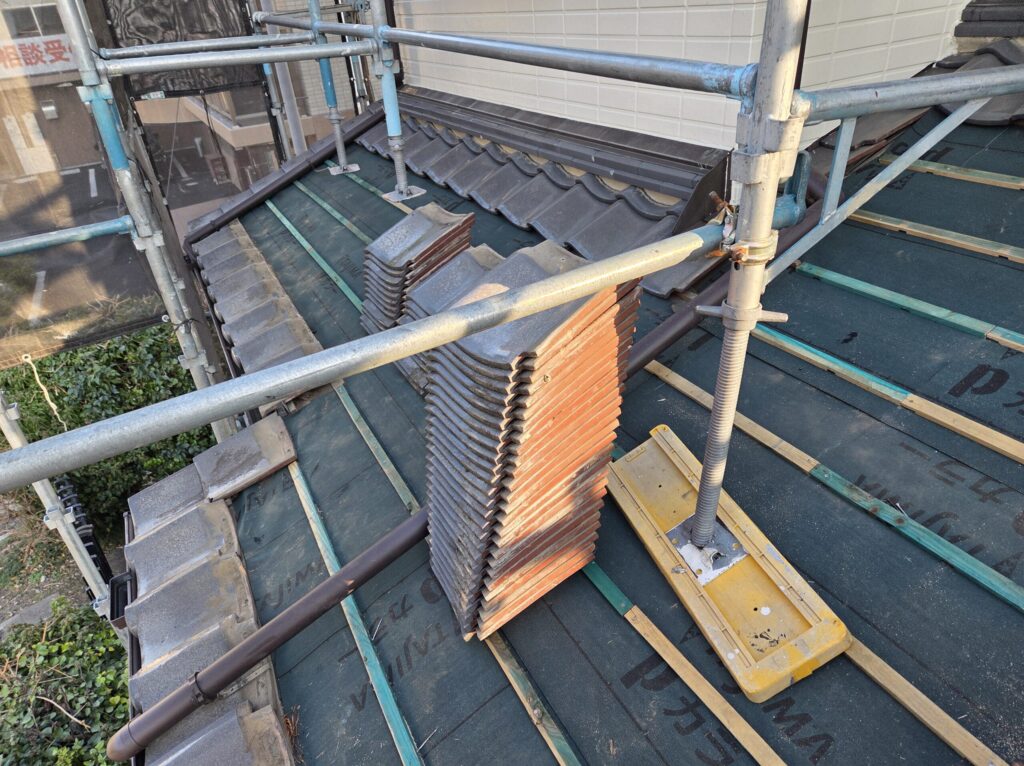 松戸市 邸宅 一部葺きなおし 2026 3/06 施工事例紹介 2026-03-06 瓦平部の下葺き・桟木の交換を行い、瓦を釘にて全数止めにて葺きなおしを行いました。 屋根のお困りごと・ご相談は創業100年余り株式会社馬場瓦店まで お問い合わせはこちら 施工事例紹介 よかったらシェアしてね! URLをコピーしました! URLをコピーしました! 春一番が吹くと心配になる 松戸市 邸宅 葺きなおし工事 この記事を書いた人 babakawaten 東京都足立区の瓦施工業者 関連記事 松戸市 邸宅 葺きなおし工事 2026-03-06 瓦からコロニアルへの葺き替え工事 2026-01-17 葛飾区 寺院 部分修理 2026-01-17 足立区 K邸 棟部取り直し 2025-08-05 足立区 S邸 2025-07-24 葛飾区 K寺 渡り廊下屋根 2025-07-22 足立区 K邸 葺き替え工事 2025-07-18 西新井 S邸 棟部取り直し 2025-07-16 コメント コメントする コメントをキャンセルコメント ※ 名前 ※ メール ※ サイト 次回のコメントで使用するためブラウザーに自分の名前、メールアドレス、サイトを保存する。 上に表示された文字を入力してください。